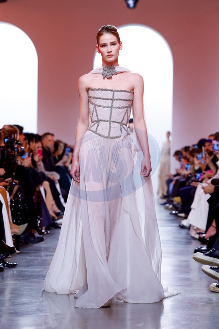 Défilé Elie Saab au Palais de Tokyo Collection Haute Couture Printemps/Eté 2025 lors de la Fashion Week de Paris (PFW), France, le 29 janvier 2025. Elie Saab Spring/Summer 2025 Haute Couture Collection show at Palais de Tokyo during Paris Fashion Week (PFW), France, January 29, 2025.