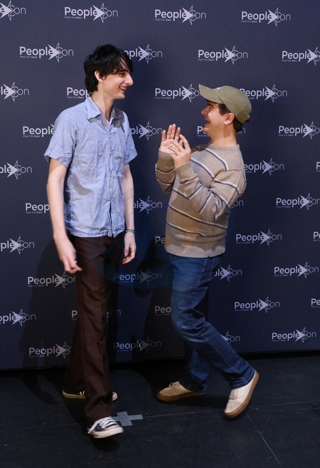 Exclusif - Gaten Matarazzo et Finn Wolfhard lors de la convention de la série Américaine Culte 'Stranger Things' au Palais des Congrès de Paris le 2 Fevrier 2025. Exclusive - No web en Suisse / Belgique Photocall of the actors present at the Stranger Things convention, Stranger Fan Meet Tour, at the Palais des Congrès in Paris on february 2nd 2025