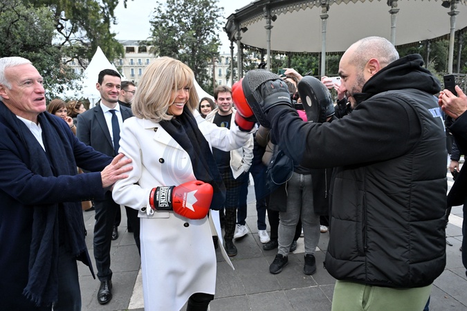 Clôture de l'opération de collecte de fonds "Pièces Jaunes", destinée à améliorer la vie des enfants hospitalisés, au Jardin Albert 1er, à Nice, France, le 7 février 2025, en présence de la Première dame française, Brigitte Macron, la présidente de la Fondation Hôpitaux de Paris-Hôpitaux de France, du sélectionneur de l'équipe de France de football, Didier Deschamps le parrain de l'opération Pièces Jaunes, de Christian Estrosi, le maire de Nice, sa femme, Laura Tenoudji Estrosi, d'Anne Barrère, la vice-présidente de la Fondation Hôpitaux de Paris-Hôpitaux de France, Philippe Wahl, le président-directeur général du Groupe La Poste, de José Cobos, ancien capitaine de l'OGC Nice et conseiller municipal de la ville de Nice délégué à l'évènementiel sportif, et du compositeur du morceau caritatif "Les P'tits Soleils", l'hymne des Pièces Jaunes, John Mamann. Ce titre a été chanté sur la scène par Eugie, Sab, Julien Esmée, Vernis Rouge... et les personnalités. Mme Macron et Didier Deschamps ont fait, comme à leur habitude, le tour des diffèrents stands des associations et des partenaires, comme Carrefour, la Fondrtion Lenval, le CHU, la Poste et la Banque de France où ils ont fait la pesée des pièces jaunes... mais l'arrêt le plus surprenant fut sur le stand du Nice Azur Boxe où le coach des Bleus et Mme Macron n'ont pas hésité à mettre les gants pour quelques échanges avec les boxeurs présents. © Bruno Bebert/Bestimage Closing of the ‘Pièces Jaunes' fundraising operation, designed to improve the lives of children in hospital, at the Jardin Albert 1er, in Nice, France, on 7 February 2025, in the presence of the French First Lady, Brigitte Macron, the President of the Fondation Hôpitaux de Paris-Hôpitaux de France, the coach of the French football team, Didier Deschamps, the patron of the Pièces Jaunes operation, Christian Estrosi, Mayor of Nice, his wife Laura Tenoudji Estrosi, Anne Barrère, Vice-President of the Fondation Hôpitaux de Paris-Hôpitaux de France, Philippe Wahl, Chairman and CEO of Groupe La Poste, José Cobos, former captain of OGC Nice and Nice city councillor responsible for sports events, and John Mamann, composer of the charity song ‘Les P'tits Soleils', the anthem of the Pièces Jaunes operation. The song was sung on stage by Eugie, Sab, Julien Esmée, Vernis Rouge and other celebrities. As usual, Mrs Macron and Didier Deschamps toured the various stands of the associations and partners, including Carrefour, the Lenval Foundation, the CHU, the Post Office and the Banque de France, where they weighed the yellow coins... but the most surprising stop was at the Nice Azur Boxe stand, where the Les Bleus coach and Mrs Macron didn't hesitate to put on the gloves for a few exchanges with the boxers present.