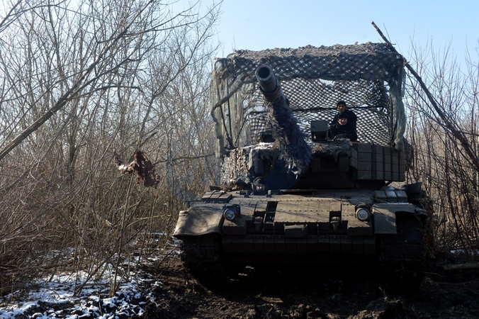 DONETSK REGION, UKRAINE - FEBRUARY 9, 2025 - Soldiers man a tank as the 1st Tank Battalion of Ukraine's 5th Heavy Mechanized Brigade equipped with Leopard 1A5 tanks serves in Kurakhove and Pokrovsk directions, Donetsk region, eastern Ukraine. (Photo by Oleksandr Klymenko/Ukrinform), Credit:Oleksandr Klymenko / Avalon