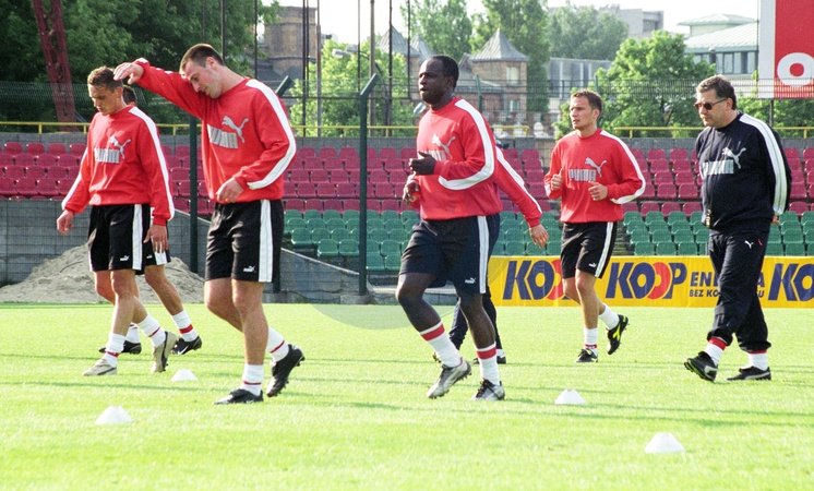 Warszawski stadion Legii. Ostatni trening Polskiej reprezentacji w pilce noznej przed wyjazdem do Korei na Mistrzostwa Swiata.