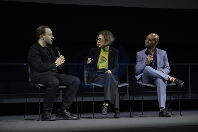 Oscar® Nominees Gints Zilbalodis, Flow with Jinko Gotoh and Marlon West during the Academy of Motion Picture Arts and Sciences "Oscar Nominee Spotlights: Animated Feature Film” Event on Saturday, February 22, 2025 at the The Academy Museum of Motion Pictures in Los Angeles., Credit:Kyusung Gong/Academy Museum Foundation / Avalon