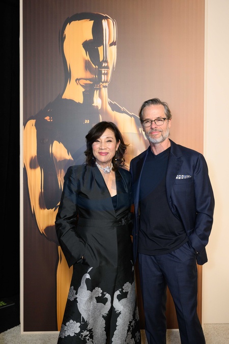 Academy President Janet Yang and Guy Pearce at the 97th Oscars Nominees dinner at the Academy Museum of Motion Pictures on Tuesday, February 25, 2025., Credit:Trae Patton / The Academy / Avalon