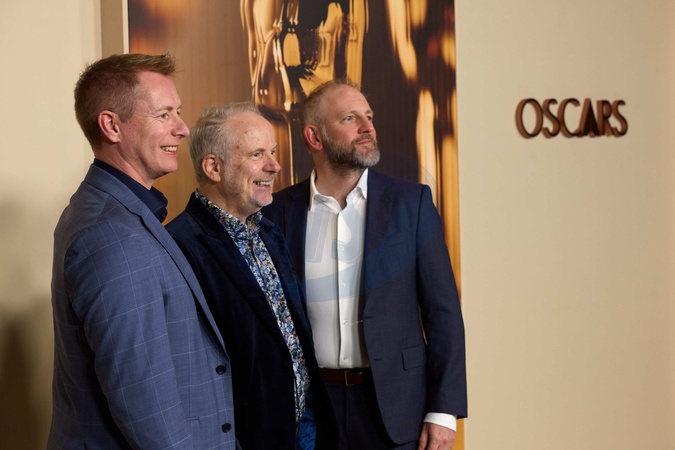 Merlin Crossingham, Nick Park and Richard Beek at the 97th Oscars Nominees dinner at the Academy Museum of Motion Pictures on Tuesday, February 25, 2025., Credit:Trae Patton / The Academy / Avalon