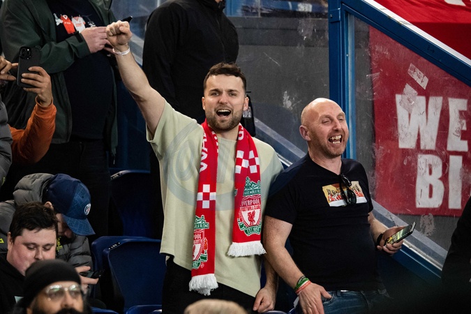 Supporters du FC Liverpool - Ambiance - 1/8e de finale aller de la Ligue des champions 2024-25 entre le PSG contre Liverpool (0-1) au Parc des Princes à Paris le 5 mars 2025. 1/8th final first leg of the 2024-25 Champions League between PSG against Liverpool (0-1) at the Parc des Princes in Paris on March 5, 2025.