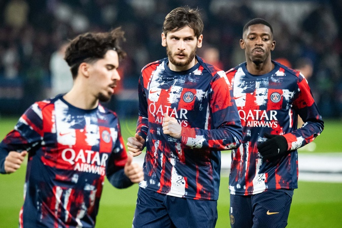 Khvicha Kvaratskhelia (Paris SG) - 1/8e de finale aller de la Ligue des champions 2024-25 entre le PSG contre Liverpool (0-1) au Parc des Princes à Paris le 5 mars 2025. 1/8th final first leg of the 2024-25 Champions League between PSG against Liverpool (0-1) at the Parc des Princes in Paris on March 5, 2025.