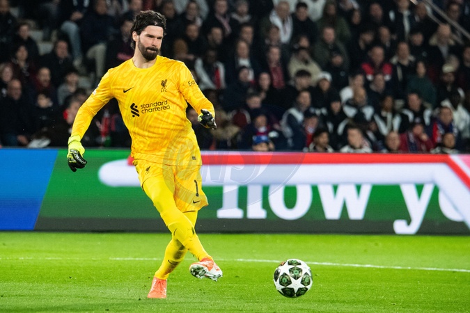 Alisson (FC Liverpool) - 1/8e de finale aller de la Ligue des champions 2024-25 entre le PSG contre Liverpool (0-1) au Parc des Princes à Paris le 5 mars 2025. 1/8th final first leg of the 2024-25 Champions League between PSG against Liverpool (0-1) at the Parc des Princes in Paris on March 5, 2025.