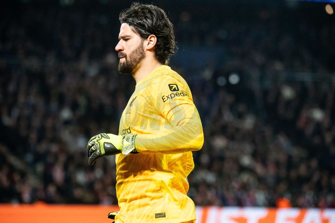 Alisson (FC Liverpool) - 1/8e de finale aller de la Ligue des champions 2024-25 entre le PSG contre Liverpool (0-1) au Parc des Princes à Paris le 5 mars 2025. 1/8th final first leg of the 2024-25 Champions League between PSG against Liverpool (0-1) at the Parc des Princes in Paris on March 5, 2025.