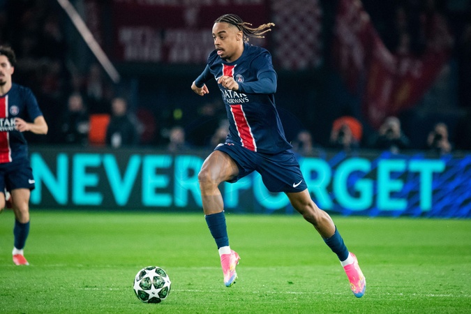 Bradley Barcola (Paris SG) - 1/8e de finale aller de la Ligue des champions 2024-25 entre le PSG contre Liverpool (0-1) au Parc des Princes à Paris le 5 mars 2025. 1/8th final first leg of the 2024-25 Champions League between PSG against Liverpool (0-1) at the Parc des Princes in Paris on March 5, 2025.
