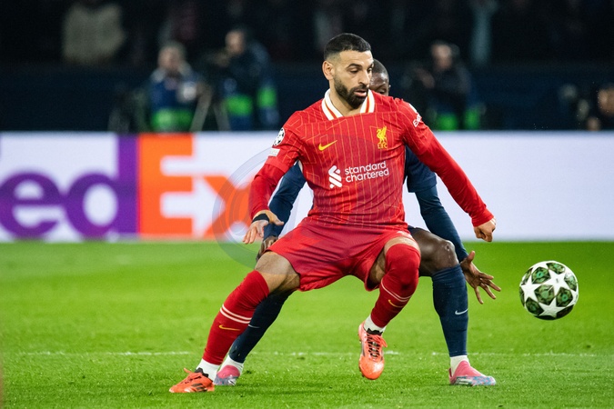 Mohamed Salah (FC Liverpool) - 1/8e de finale aller de la Ligue des champions 2024-25 entre le PSG contre Liverpool (0-1) au Parc des Princes à Paris le 5 mars 2025. 1/8th final first leg of the 2024-25 Champions League between PSG against Liverpool (0-1) at the Parc des Princes in Paris on March 5, 2025.