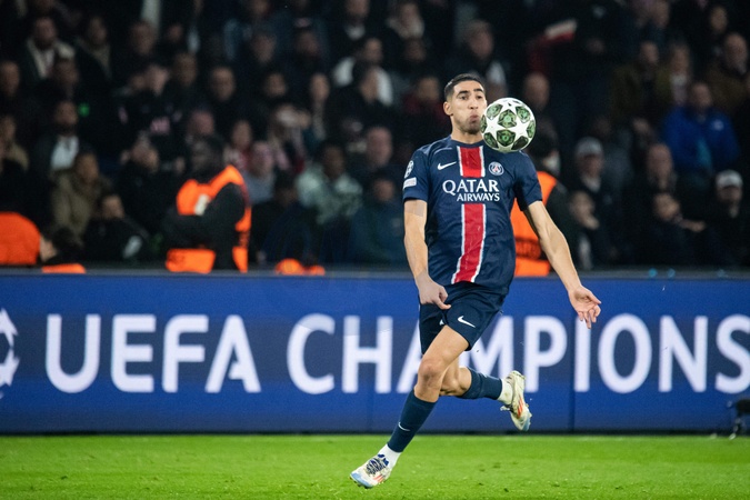 Achraf Hakimi (Paris SG) - 1/8e de finale aller de la Ligue des champions 2024-25 entre le PSG contre Liverpool (0-1) au Parc des Princes à Paris le 5 mars 2025. 1/8th final first leg of the 2024-25 Champions League between PSG against Liverpool (0-1) at the Parc des Princes in Paris on March 5, 2025.
