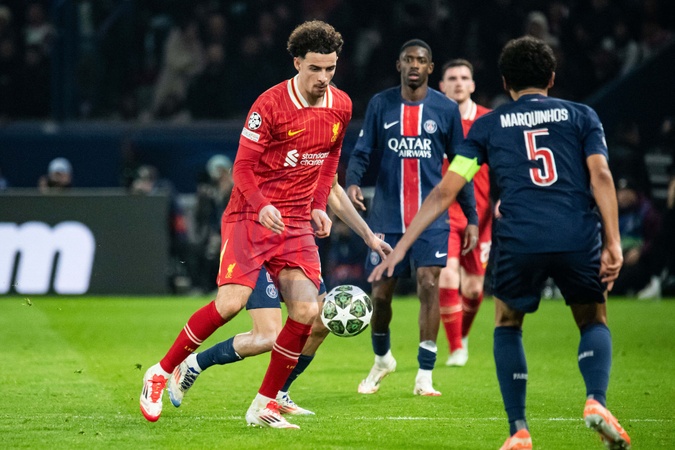 Curtis Jones (FC Liverpool) - 1/8e de finale aller de la Ligue des champions 2024-25 entre le PSG contre Liverpool (0-1) au Parc des Princes à Paris le 5 mars 2025. 1/8th final first leg of the 2024-25 Champions League between PSG against Liverpool (0-1) at the Parc des Princes in Paris on March 5, 2025.