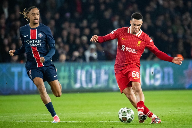 Trent Alexander-Arnold (FC Liverpool) - 1/8e de finale aller de la Ligue des champions 2024-25 entre le PSG contre Liverpool (0-1) au Parc des Princes à Paris le 5 mars 2025. 1/8th final first leg of the 2024-25 Champions League between PSG against Liverpool (0-1) at the Parc des Princes in Paris on March 5, 2025.