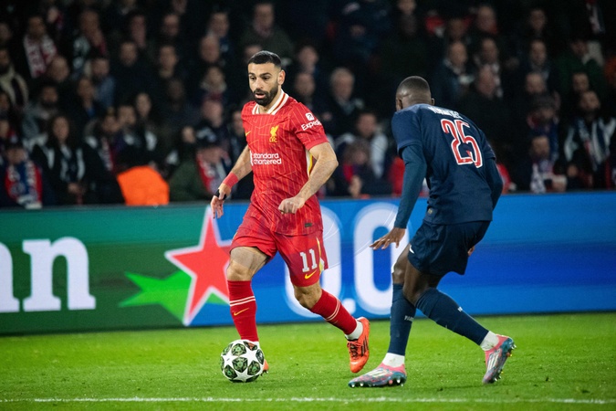 Mohamed Salah (FC Liverpool) - 1/8e de finale aller de la Ligue des champions 2024-25 entre le PSG contre Liverpool (0-1) au Parc des Princes à Paris le 5 mars 2025. 1/8th final first leg of the 2024-25 Champions League between PSG against Liverpool (0-1) at the Parc des Princes in Paris on March 5, 2025.