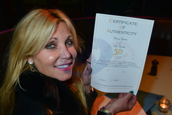 Pamela Bach-Hasselhoff presented with a copy of the Beetles 1st contract by Neil Marshall