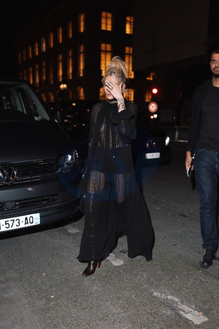 Paris Jackson en tenue très transparente se cache le visage des photographes en marge de la Paris Fashion week (PFW)