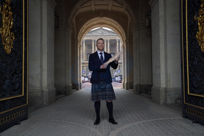 Sir Chris Hoy holding the Commonwealth baton at the launch of the Commonwealth Sport King's Baton Relay, officially starting the countdown towards the Glasgow 2026 Commonwealth Games at Buckingham Palace, London. Picture date: Monday March 10, 2025., Credit:Jonathan Brady / Avalon