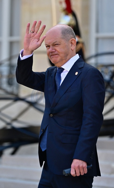 Olaf Scholz, chancelier fédéral d'Allemagne à la sortie du sommet de la "Coalition des volontaires" en soutien à l'Ukraine au Palais présidentiel de l'Élysée à Paris, France, le 27 mars 2025. © Christian Liewig/Bestimage Exits after a summit for "coalition of the willing" at the Elysee Palace, in Paris, France, on March 27, 2025.