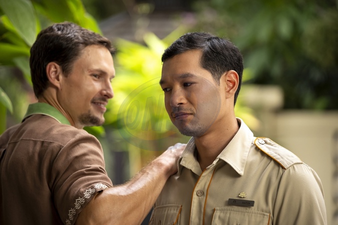 Arnas Fedaravicius, Tayme Thapthimthong in Season 3 Episode 8 of The White Lotus, Credit:HBO / Avalon