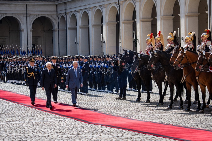 Their Majesties, King Charles III, and Queen Camilla arrive at Quirinale Palace in Rome, Italy, on 8 April 2025.