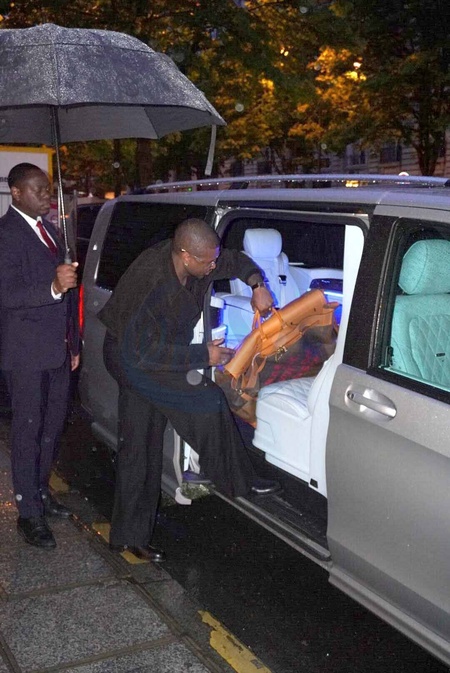 Piosenkarz Usher przybywa do hotelu Royal Monceau w Paryżu