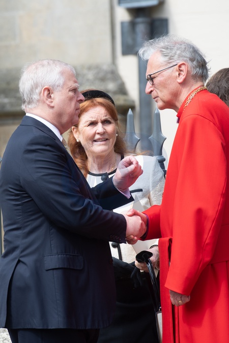 Prince Andrew - The Duke of York and Sarah Ferguson - The Duchess of York depart an Easter Service at St. George's Chapel, Windsor Castle, London, England, UK on Sunday 20 April, 2025., Credit:Justin Ng / Avalon