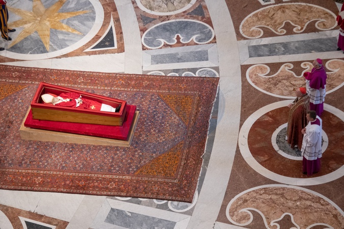 Ciało papieża Franciszka zostało przeniesione przez Plac Świętego Piotra do Bazyliki Świętego Piotra w Watykanie, Watykan, 23 kwietnia 2025 r.