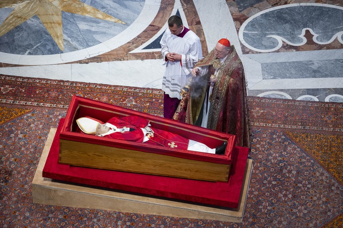 Italy, Rome, Vatican City, 23 April, 2025 : Ceremony of the transfer of the body of Pope Francis to St. Peter's Basilica, the coffin enters the Basilica amid the applause of the faithfuls. The coffin with the body of Pope Francis will remain in the Papal Basilica until Friday, April 25 to allow the faithful to pay their last respects., Credit:Stefano Carofei / Avalon
