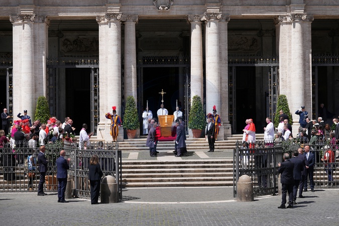 Arrival of Pope Francis' coffin at Santa Maria Maggiore, at the end of the funeral, Rome, Italy 26 April 2025 *** Local Caption *** VATICAN CITY, VATICAN - APRIL26: A general view during the funeral of Pope Francis in St. Peter's Square on April 26, 2025 in Vatican City, Vatican. Pope Francis died on April 21st at the age of 88. Born in Argentina as Jorge Mario Bergoglio, he was the first Latin American and the first Jesuit to become Pope when elected in 2013. Taking the name Francis after St Francis of Assisi, he promoted a more humble version of the papacy than many of his predecessors. He will be buried outside of the Vatican in a simple wooden coffin at the Basilica Santa Maria Maggiore. (Photo by Ernesto S. Ruscio/Getty Images), Credit:Christopher Furlong / Avalon