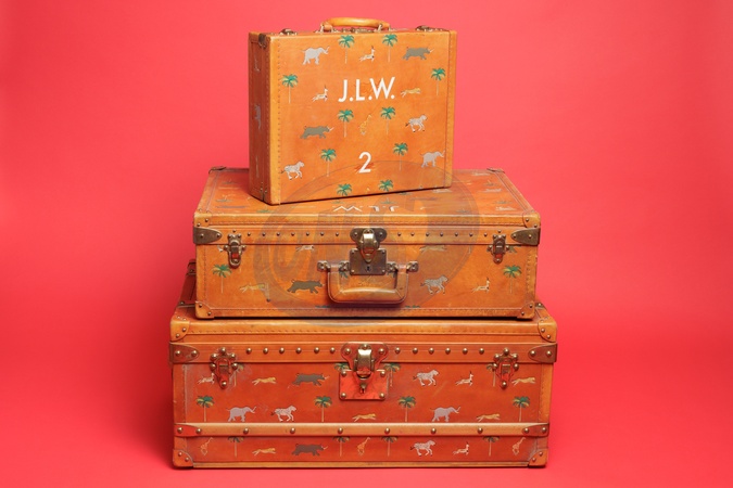 "François Voltaire” suitcases of the Whitman brothers. Marc Jacobs for Louis Vuitton. "wildlife” print designed by Eric Chase Anderson. THE DARJEELING LIMITED., Credit:Roger Do Minh/the Design Museum / Avalon