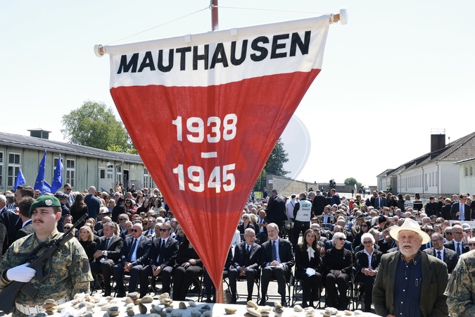 Le roi Felipe VI et la reine Letizia d’Espagne, le président autrichien Alexander van der Bellen assistent au 80ème anniversaire de la libération au mémorial de l'ancien camp de concentration de Mauthausen, près de Linz (Autriche)