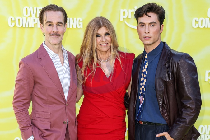 HOLLYWOOD, LOS ANGELES, CALIFORNIA, USA - MAY 14: James Van Der Beek, Connie Britton and Benito Skinner arrive at the Los Angeles Premiere Of Amazon Prime Video's 'Overcompensating' Season 1 held at the Hollywood Palladium on May 14, 2025 in Hollywood, Los Angeles, California, United States., Credit:Xavier Collin / Avalon