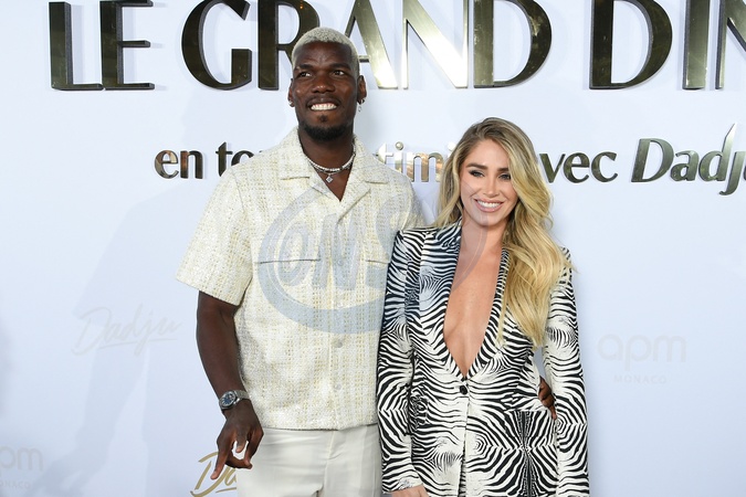 Paul Pogba et Maria Zulay Salaues au photocall du Grand Dîner en toute intimité avec Dadju sur la plage de l'hôtel Carlton en marge du 78ème Festival International du Film de Cannes, France, le 17 mai 2025. © Lionel Urman/Bestimage