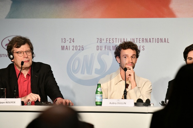 Aubry Dullin en conférence de presse pour Nouvelle Vague" lors du 78ème Festival International du Film de Cannes, France, le 18 mai 2025. © Valentina Claret/Pool/Bestimage Press conference for the film "Nouvelle Vague" (New Wave) at the 78th edition of the Cannes Film Festival in Cannes, southern France, on May 18, 2025.