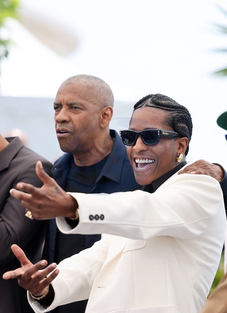 Denzel Washington et A$AP Rocky au photocall Highest 2 Lowest lors du 78ème Festival International du Film de Cannes, au Palais des Festivals à Cannes, France, le 19 mai 2025. © Jacovides-Moreau/Bestimage "Highest 2 Lowest" photocall at the 78th annual Cannes Film Festival at Palais des Festivals in Cannes, France, on May 19, 2025.