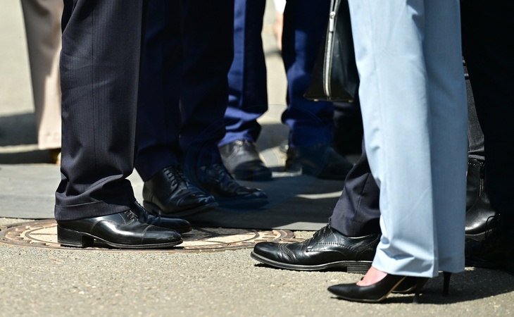 Bruno Retailleau i Nicolas Sarkozy podczas hołdu Aurélie Fouquet w Villiers-sur-Marne