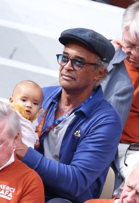 Yannick Noah et sa fille Keelaani lors de l'hommage à R.Nadal lors des internationaux de France de tennis à Roland Garros le 25 mai 2025. © Jacovides / Moreau / Bestimage --- Masquer le visage de l'enfant à la publication --- --- Pixelate child face prior to publication --- Yannick Noah, his partner Malika and their daughter Keelaani attend the tribute to Rafael Nadal during the French tennis internationals at Roland Garros on may 25th 2025