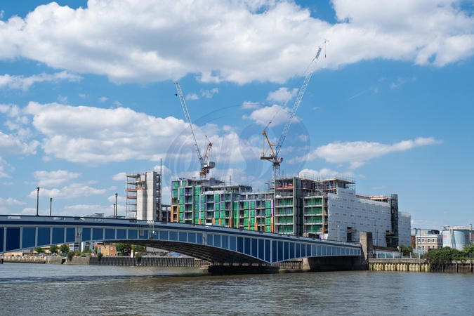 Wandsworth bridge and construction seen from the Thames path walk from Putney to Battersea Power station. London. United Kingdom. 10 May 2025, Credit:Mark Fairhurst / Avalon