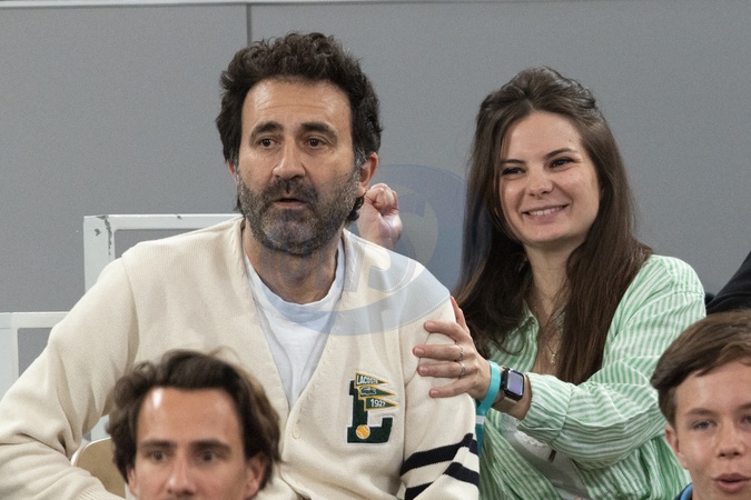 Mathieu Madénian et sa compagne Olivia Madénian dans les tribunes lors des Internationaux de France de Tennis de Roland Garros 2025. Paris, le 28 mai 2025. © Moreau / Jacovides / Bestimage Celebrities in the stands during the French Open Tennis Championships at Roland Garros 2025, on May 28th, 2025 in Paris.