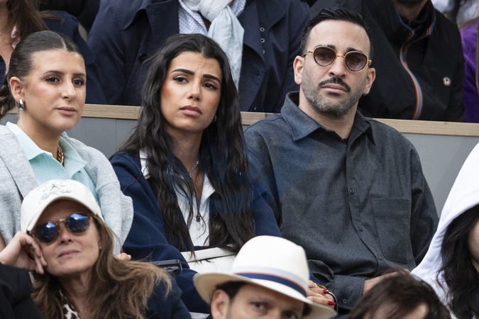 Adil Rami et sa compagne en tribunes lors des Internationaux de France de Tennis de Roland Garros 2025, à Paris, France, le 7 juin 2025. © Cyril Moreau/Bestimage Celebs in the stands during the 2025 French Open Tennis Championships at Roland Garros, in Paris, France, on June 7th, 2025. © Cyril Moreau/Bestimage