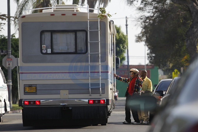 67340, LOS ANGELES, CALIFORNIA - Monday September 26, 2011. Soul Legend Sly Stone gets a new home, upgrading from his camper van to a full on RV in Los Angeles. Earlier this week Sly was seen living in a small white van on the side of the street despite selling millions of records in his hay day. His spokesman reports that he will be using the RV space as a studio to record more music. **FEE MUST BE AGREED PRIOR TO USAGE** **E-TABLET/IPAD & MOBILE PHONE APP PUBLISHING REQUIRES ADDITIONAL FEES**, Credit:Nathanael Jones / Avalon