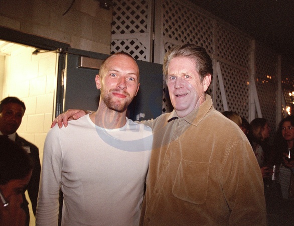 Chris Martin of the band Coldplay with Brian Wilson backstage at Hollywood Bowl. L.A. on 31st may 2003. © Edd Westmacott Credit alluses Retna/Photoshot80