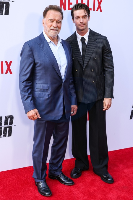 HOLLYWOOD, LOS ANGELES, CALIFORNIA, USA - JUNE 11: Austrian and American actor, former Governor of California, businessman, former politician, and former professional bodybuilder Arnold Schwarzenegger and son/American actor and model American actor and model Patrick Schwarzenegger arrive at the Los Angeles Premiere Of Netflix's 'FUBAR' Season 2 held at the Netflix Tudum Theater on June 11, 2025 in Hollywood, Los Angeles, California, United States., Credit:Xavier Collin / Avalon