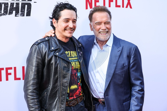 HOLLYWOOD, LOS ANGELES, CALIFORNIA, USA - JUNE 11: American actor and producer Gabriel Luna and Austrian and American actor, former Governor of California, businessman, former politician, and former professional bodybuilder Arnold Schwarzenegger arrive at the Los Angeles Premiere Of Netflix's 'FUBAR' Season 2 held at the Netflix Tudum Theater on June 11, 2025 in Hollywood, Los Angeles, California, United States., Credit:Xavier Collin / Avalon