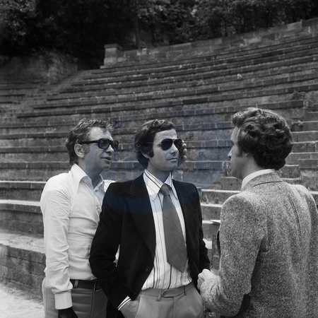 Gott schützt die Liebenden, Spielfilm, Deutschland / Spanien / Italien 1973, Regie: Alfred Vohrer, Regisseur Alfred Vohrer (links) mit Nino Castelnuovo und Manuel Zarzo während der Dreharbeiten., Credit:Kindermann / Avalon