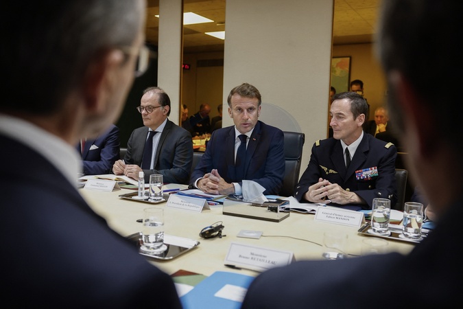 Le président Emmanuel Macron assiste à une réunion de sécurité nationale sur la crise entre Israël et l'Iran dans la salle Jupiter du palais de l'Élysée à Paris