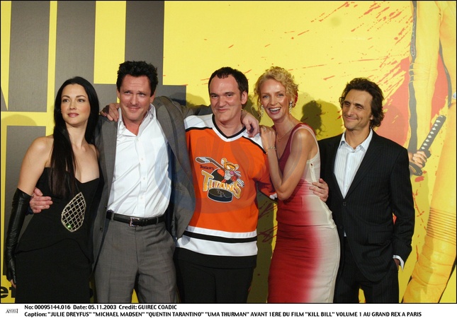 "JULIE DREYFUS" "MICHAEL MADSEN" "QUENTIN TARANTINO" "UMA THURMAN" AVANT 1ERE DU FILM "KILL BILL" VOLUME 1 AU GRAND REX A PARIS AMERICAIN" FEMININ HOMME ACTEUR ACTRICE REALISATEUR "EQUIPE DU FILM"