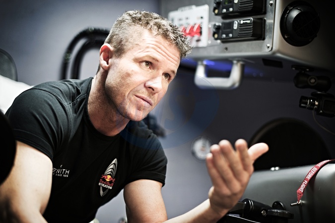 Pilot Felix Baumgartner of Austria seen during the egress trainig for the Red Bull Stratos mission in Lancaster, California, USA on February 23 2012.504-00117 Austrian Felix Baumgartner has become the first skydiver to go faster than the speed of sound, reaching a maximum velocity of 833.9mph (1,342km/h).In jumping out of a balloon 128,100ft (24 miles; 39km) above New Mexico, the 43-year-old also smashed the record for the highest ever freefall.He said he almost aborted the dive because his helmet visor fogged up.It took just under 10 minutes for him to descend. Only the last few thousand feet were negotiated by parachute.Once down, he fell to his knees and raised his fists in triumph. Helicopter recovery teams were on hand moments later., Credit:Avalon