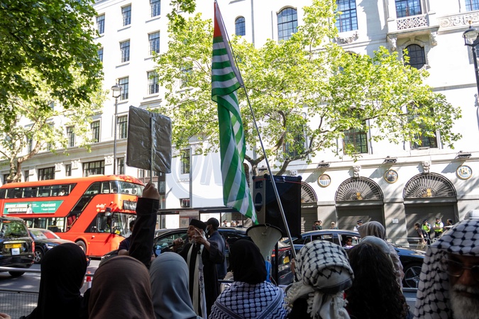 Kashmiri activists, alongside Pakistanis and supporters, held a protest outside the Indian High Commission., Credit:Zak Irfan / Avalon