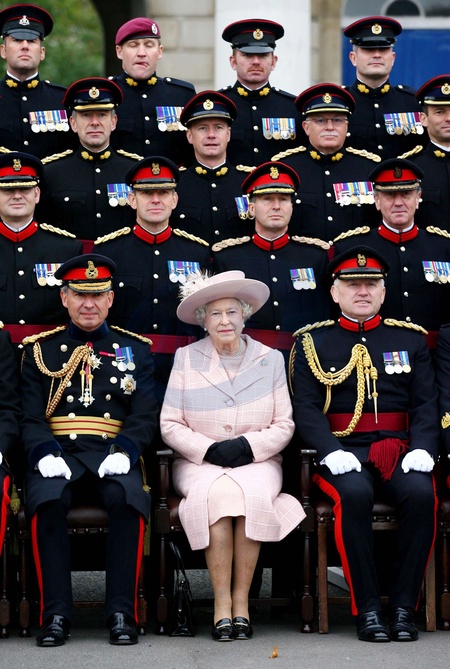 Krolowa Elzbieta II podczas spotkania z korpusem Royal Engineers at Brompton Barracks, Chatham
